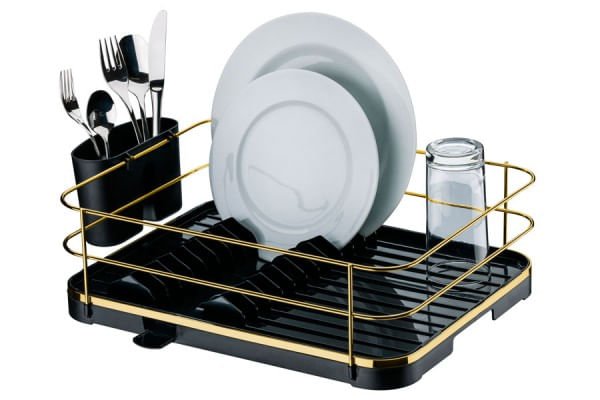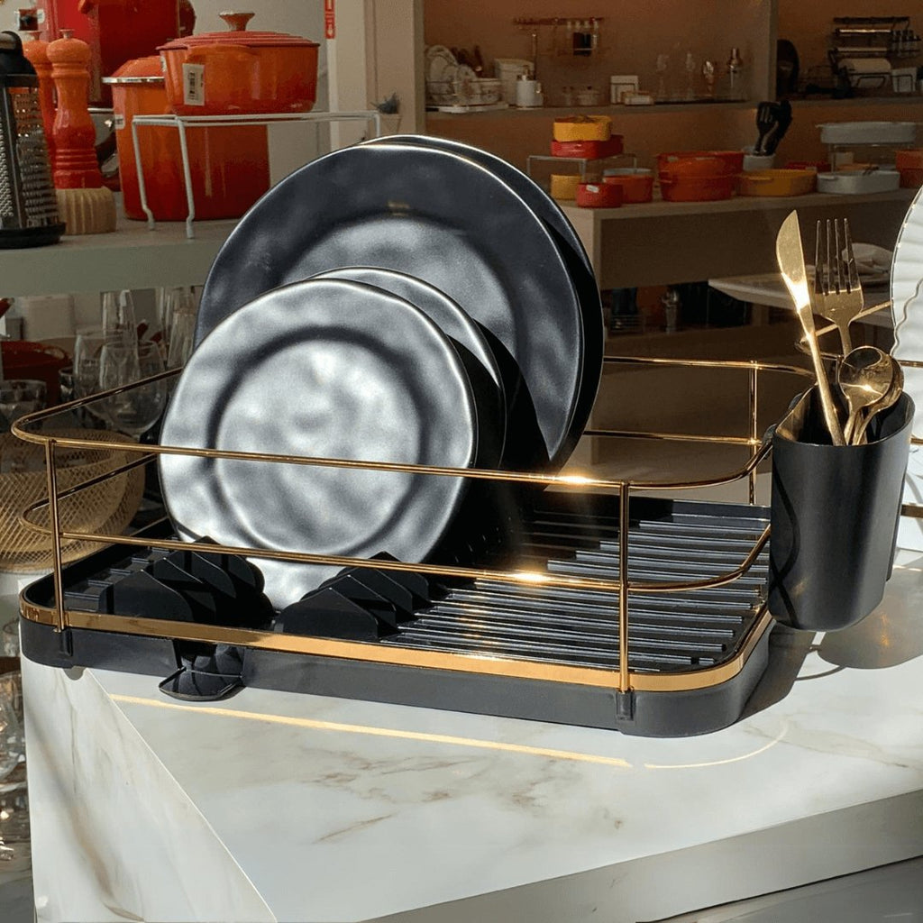 O Escorredor de Louças Preto e Dourado com Bico é o item indisponível para organização e limpeza da pia da cozinha.